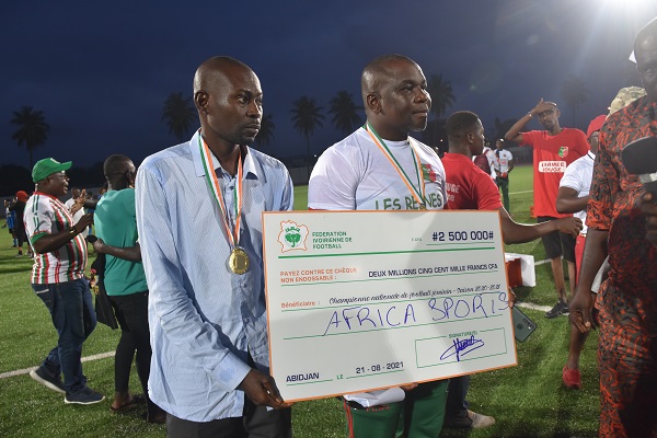 Championne de la saison 2020-2021, les joueuses de l'Africa Sports ont reçu des médailles en or, un trophée et un chèque de 2,5 millions Francs CFA. Quant aux vice-championnes, elles sont reparties avec des médailles en argent et un chèque d’un million Francs CFA.