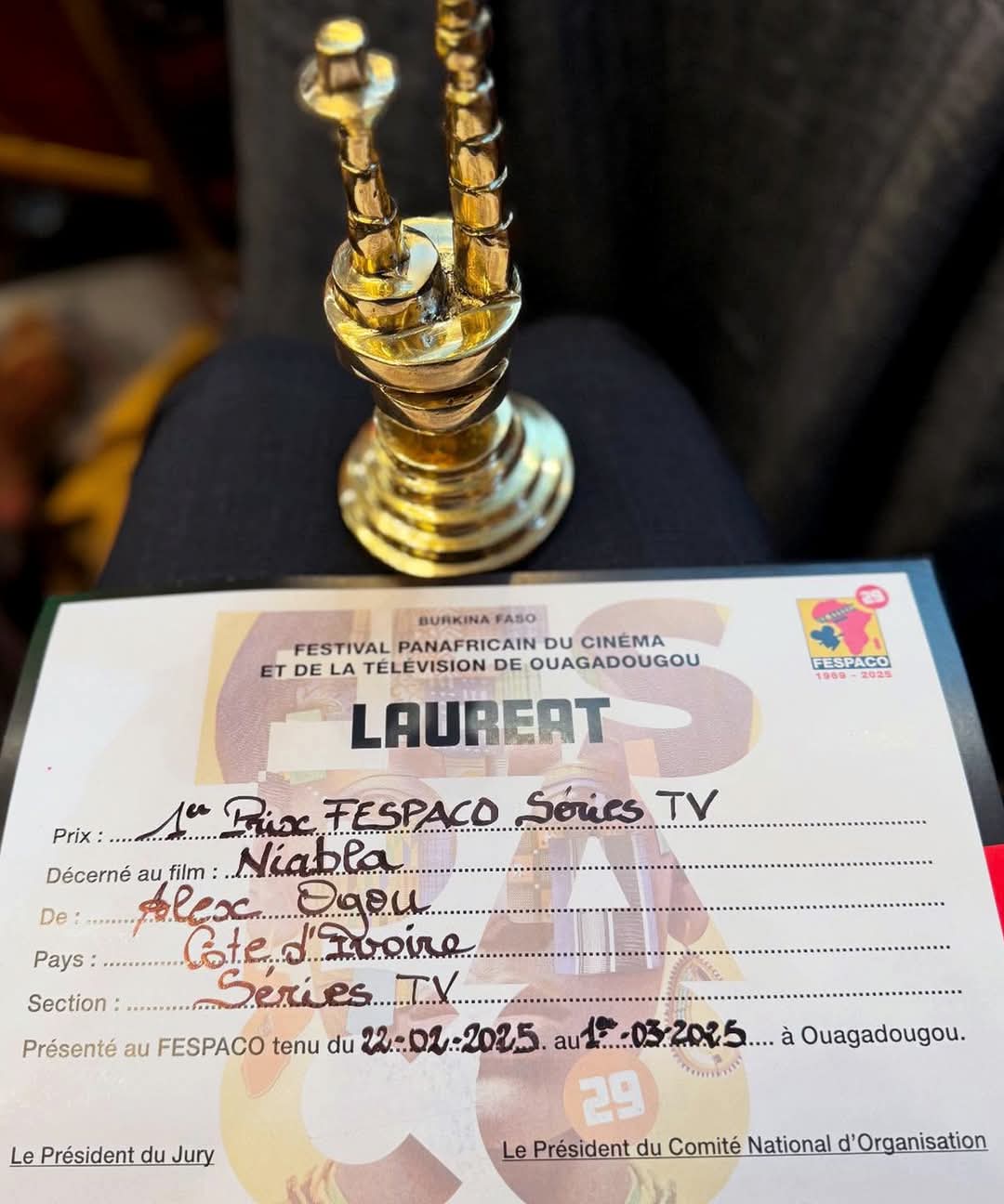 « Niabla » sacrée meilleure série TV au FESPACO à Ouagadougou. La Côte d’Ivoire s’est imposée en remportant deux distinctions majeures. Un succès qui témoigne du dynamisme et du talent des créateurs ivoiriens dans le domaine de l’audiovisuel. Réalisée par Alex Ogou, la série a été couronnée ‘’Meilleure série TV’’ de cette édition 2025. Avec son scénario puissant et sa mise en scène soignée, ce film a conquis le jury, confirmant ainsi l’expertise et la créativité de son réalisateur, déjà salué pour ses précédentes productions. Ci-dessous le regard critique de Niabla, réalisé par le journaliste culturel et critique d'art Christian Guehi.