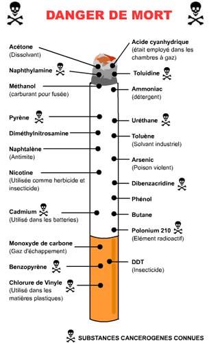 Les conséquences de l’usage du tabac sont nombreuses. Mais avant de parler des conséquences, il faut noter que le Tabac contient plus de 5000 à 6000 substances toxiques. Donc, à chaque bouffée, ce sont des milliers de substances toxiques que vous inhalez. On peut classer ces substances en 4 groupes. Il y a des substances qui entraînent le cancer, des substances qui entraînent la dépendance, des substances qui entraînent la destruction de la muqueuse. Il y a également des substances appelées des radicaux libres, qui sont des substances très dangereuses. Ces substances sont dominées par le monocyte de carbone qui est à la base des problèmes de respiration, parce que ce monocyte de carbone prend la place de l’oxygène. Donc la personne n’aura pas suffisamment d’oxygène et cela va créer des troubles de l’organisme.