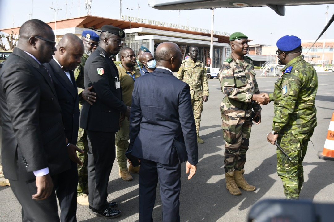 Bamako Senou, il est 16h 08mn. En fin de roulage, un comité d’accueil attend le Chef d’Etat-Major. Le chargé d’affaires de l’ambassade de Côte d’Ivoire au Mali, le Chef d’Etat-Major des Forces Armées maliennes, l’attaché de défense et des ivoiriens de l’ambassade. Mais son regard est figé sur deux autobus stationnés sur le tarmac. Il y distingue des tenues militaires caractéristiques de l’Armée ivoirienne. Son visage s’éclaire enfin. Poignées de mains, accolades, l’ambiance est cordiale avec ses hôtes de Bamako. Un court briefing avec la partie malienne sur ce qui a été prévu pour leur retour et le Chef d’Etat-Major met fin aux échanges. Car un autre rendez-vous l’attend à Lomé.