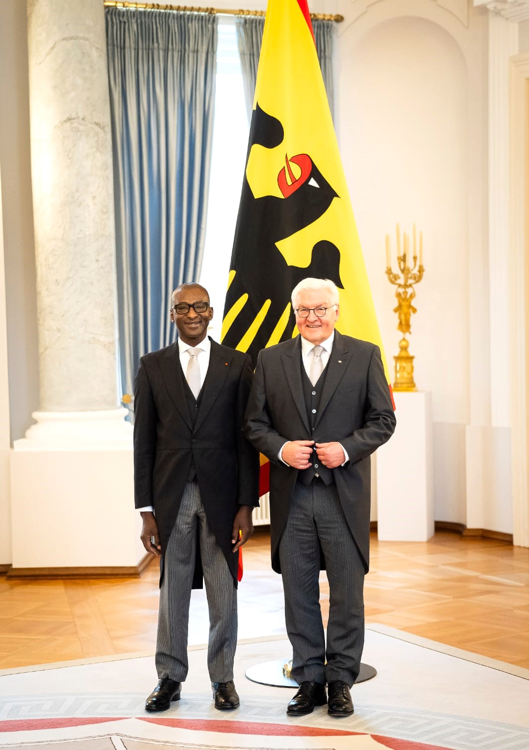 Son Excellence Monsieur Abdallah Azize Diabaté a présenté ses lettres de créance à Son Excellence Monsieur Frank-Walter Steinmeier, Président de la République fédérale d’Allemagne, en qualité d’Ambassadeur Extraordinaire et Plénipotentiaire de la République de Côte d’Ivoire près la République fédérale d’Allemagne avec résidence à Berlin, lors d’une cérémonie officielle qui s’est tenue le 22 novembre 2024 au Palais présidentiel « Schloss » (Château) Bellevue sis à Berlin.