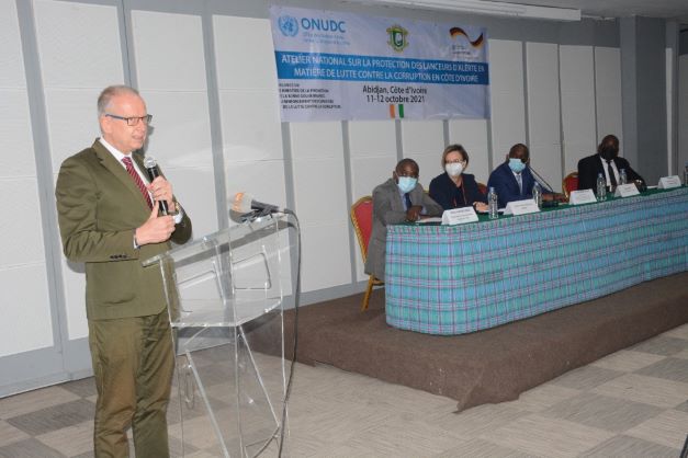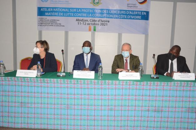 Le ministère de la Promotion de la Bonne Gouvernance, du Renforcement des Capacités et de la Lutte contre la Corruption a initié ce lundi 11 octobre 2021, un atelier national sur la protection des lanceurs d’alerte en matière de lutte contre la corruption. Cet atelier qui se tient sur deux jours au Plateau est organisé en collaboration avec l’Office des Nations Unies contre la drogue et le crime (ONUDC) et le ministère Allemand de la Coopération.
