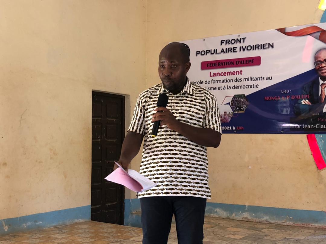 Lancée le samedi 24 avril 2021 dans le village de Monga, à Alépé par le Secrétaire général de la Fédération du Front Populaire Ivoirien (FPI) d’Alépé, Amon Célestin, l’Ecole de formation des militants au Socialisme et à la Démocratie a eu pour premier module ‘’la Politique’’.