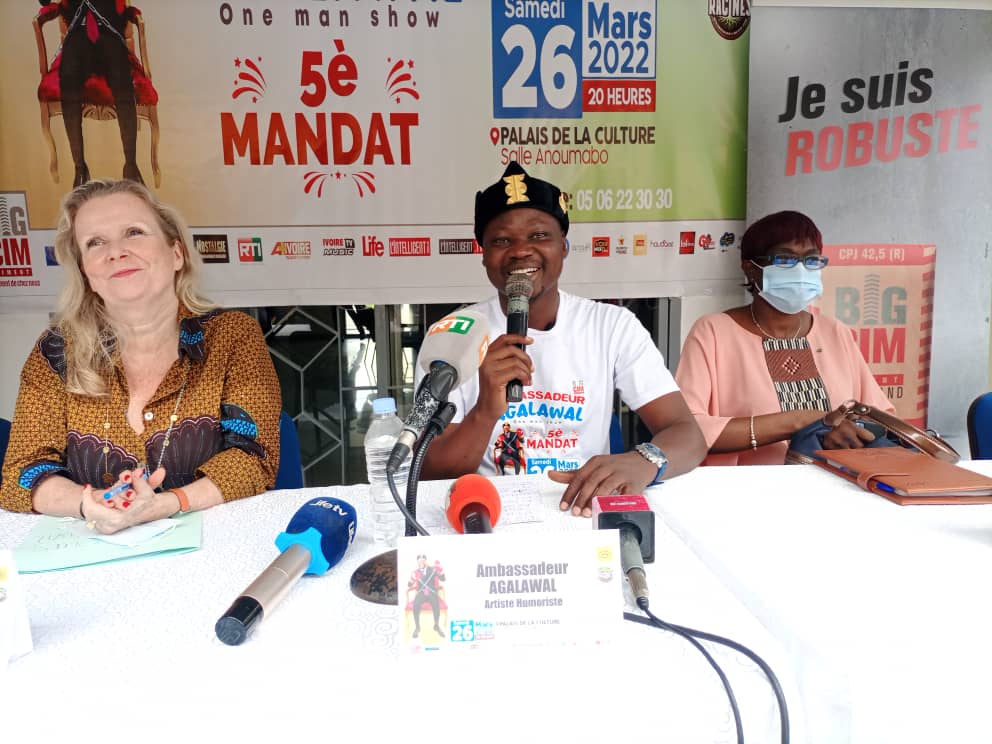 Le siège de l’Organisation des Nations Unies pour l’Education, la Science et la Culture (UNESCO) à Abidjan, Cocody 7ème tranche, a été le point de retrouvaille entre l’humoriste Agalawal et la presse. Le mercredi 2 mars 2022, ‘’l’Ambassadeur’’ a annoncé la tenue de son prochain One Man Show (son 5ème Mandat), prévu pour le samedi 26 mars 2022 au palais de la culture à Abidjan-Treichville.