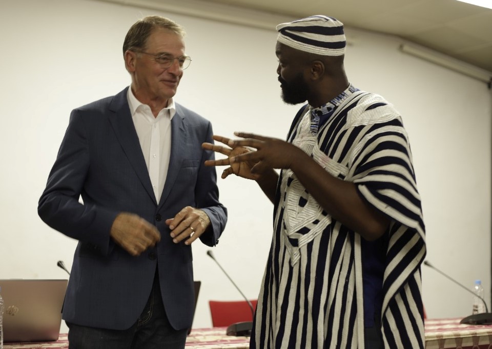 Jarafro (en tenue traditionnelle) et Rainer Hauswirth, directeur du Goethe Institut en pleine discussion (Ph : DR)
