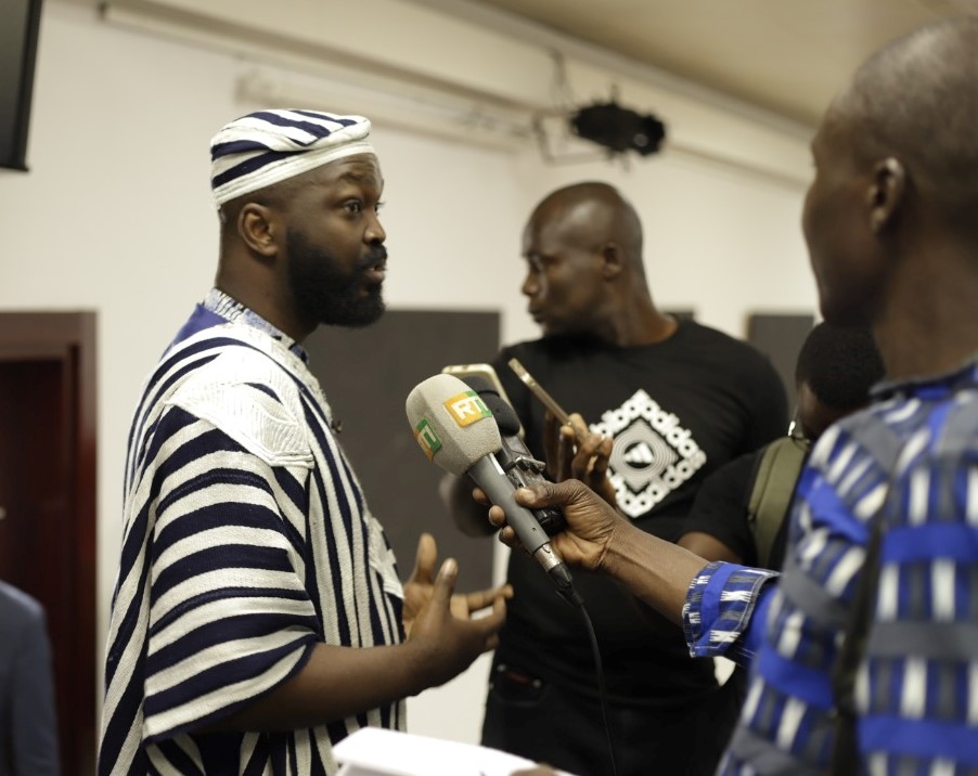 Jarafro le jazziwê donnant des précisions aux journalistes sur le FecojazzHB 2 (Ph : DR)