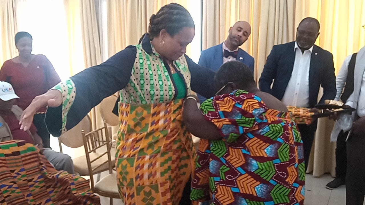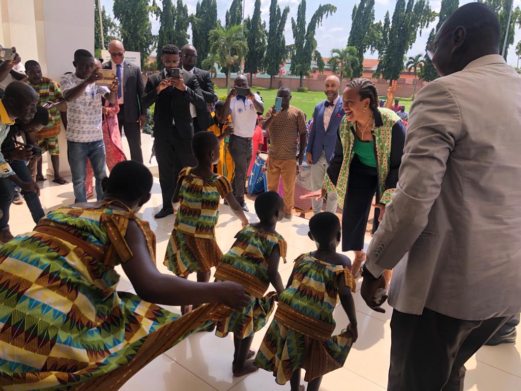 La délégation conduite par l'Ambassadeur des États Unis d'Amérique, Jessica Delis a été accueillie avec tous les honneurs dans la pure tradition Akan et Agni en particulier, où elle a eu droit à une démonstration de la danse Abodan, danse de réjouissance en pays Agni.