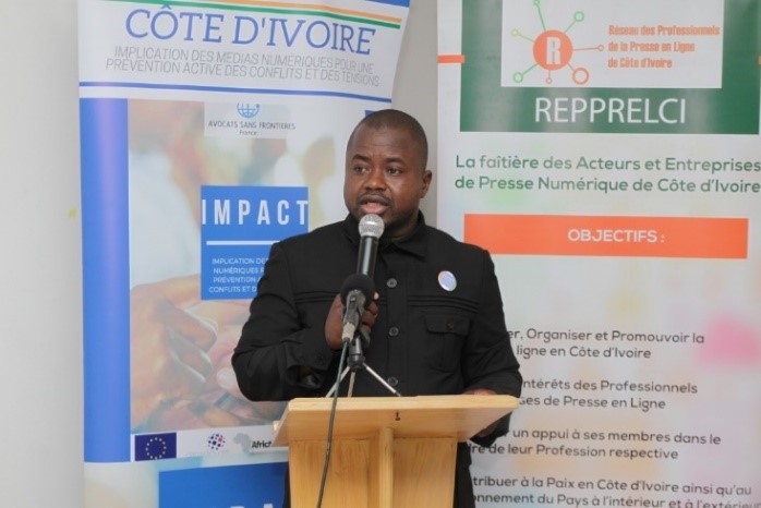 « La réflexion précède l’action. C’est pourquoi, avant les actions de terrain prévues dans ce projet, les parties prenantes ont initié une étude sur l’état des lieux des normes applicables, des pratiques en cours et des risques sur la thématique +Médias et prévention des conflits+ dans les deux pays ciblés par le projet », a expliqué Lassina Sermé, président du REPPRELCI et porte-parole du consortium du projet IMPACT.