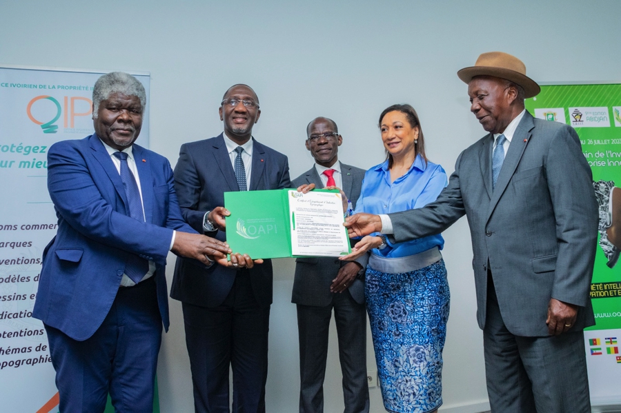 Abidjan, l’Organisation Africaine de la Propriété Intellectuelle (OAPI) a procédé, le mercredi 26 juillet 2023, à Abidjan, à la remise officielle des certificats d’enregistrement en Indication Géographique Protégée (IGP) de trois produits emblématiques de la Côte d’Ivoire qui ont été labellisés. Ce sont l’« Attiéké des Lagunes », le « Pagne Baoulé » et le « Café des montagnes de Man ».