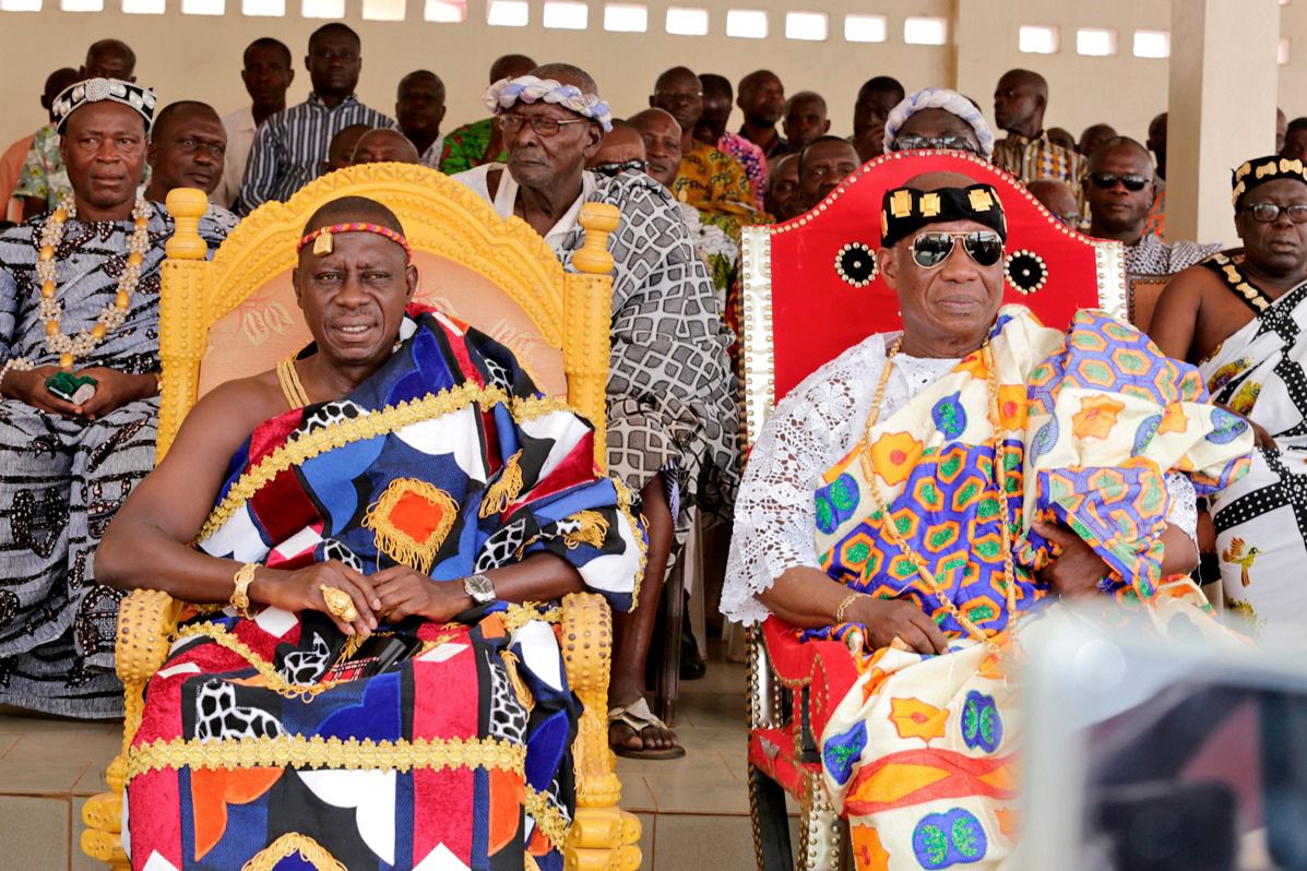Le ministre Léon Kacou Adom a été fait chef traditionnel, en recevant des deux Rois tous les attributs liés à ce titre. Il a été par la suite, reçu en digne prince du royaume dans la cour royale, temple de la culture Agni N’Dénian, en présence du roi du Djuablin Nanan Tigori Gnamin, du représentant de Nanan Boa Kouassi III, des reines et de la reine mère ; dans la pure tradition Agni.