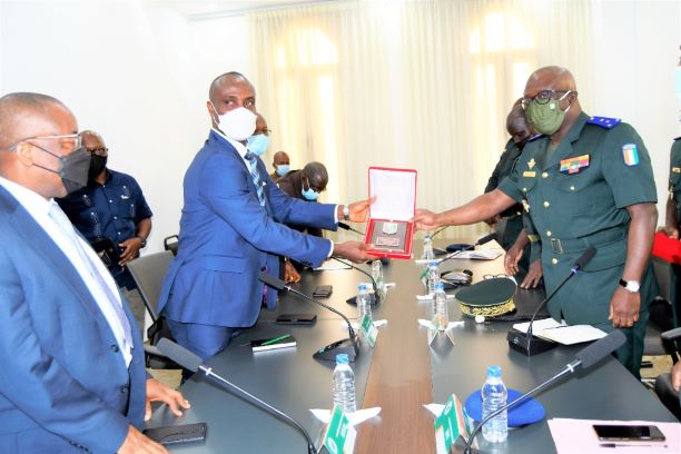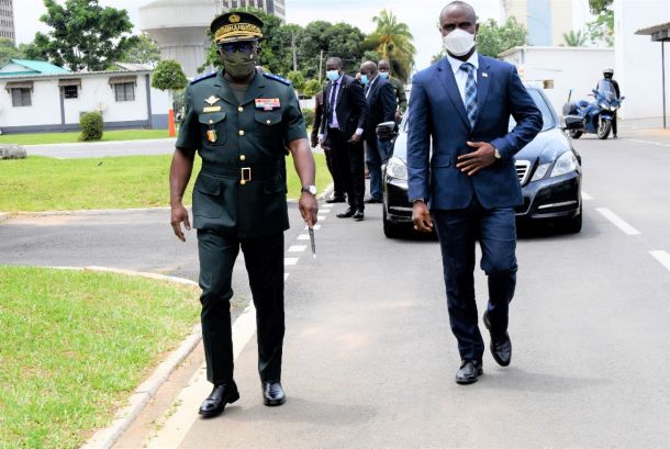 Le Chef de l’État-major général des armées Ivoirien, Lassina Doumbia et le ministre de la Défense du Liberia, Major général Daniel Ziankahn, ont eu une séance de travail, ce samedi 8 mai 2021, au siège de l’Etat-major général des armées à Abidjan-Plateau.