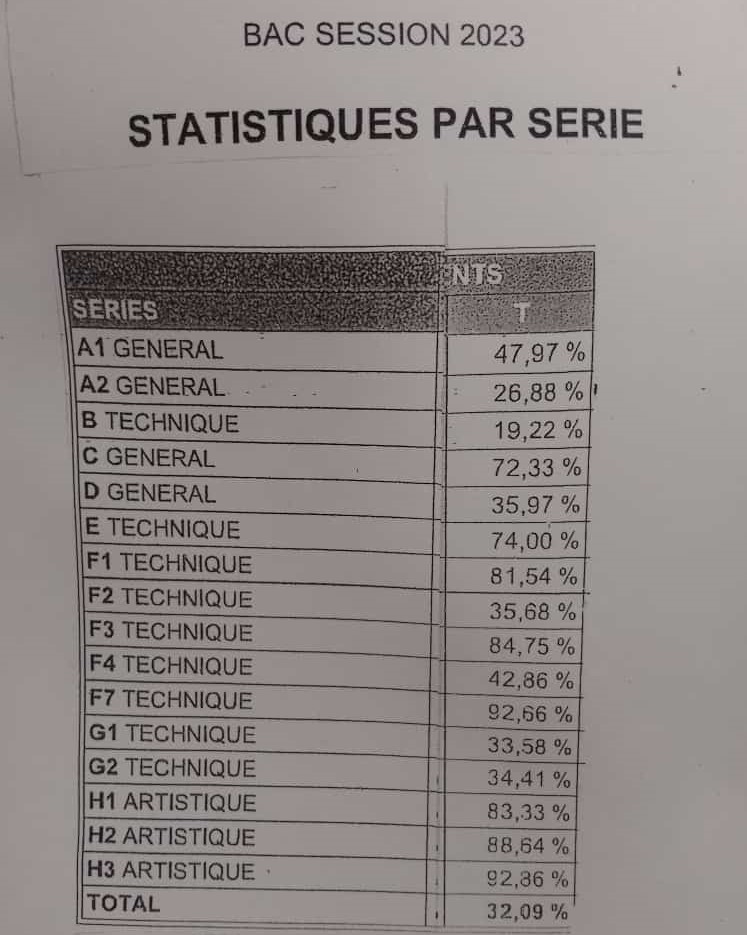 Pour la Session 2023 du BAC, ce sont au total 109.166 candidats qui ont été déclarés admis sur un total 340.213 candidats, soit un taux de réussite de 32,09%.