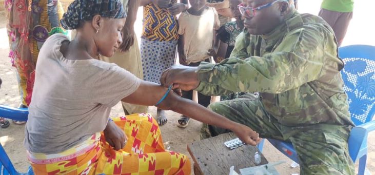 Pour cette action sociale, les populations sont venues des villages environnants pour bénéficier du savoir-faire des médecins militaires. Elles ont bénéficié de plusieurs offres dont des consultations médicales foraines menées par le corps médical militaire ; le dépistage de l'hypertension et du diabète ; le traitement de maladies endémiques ; et la distribution de déparasitant.